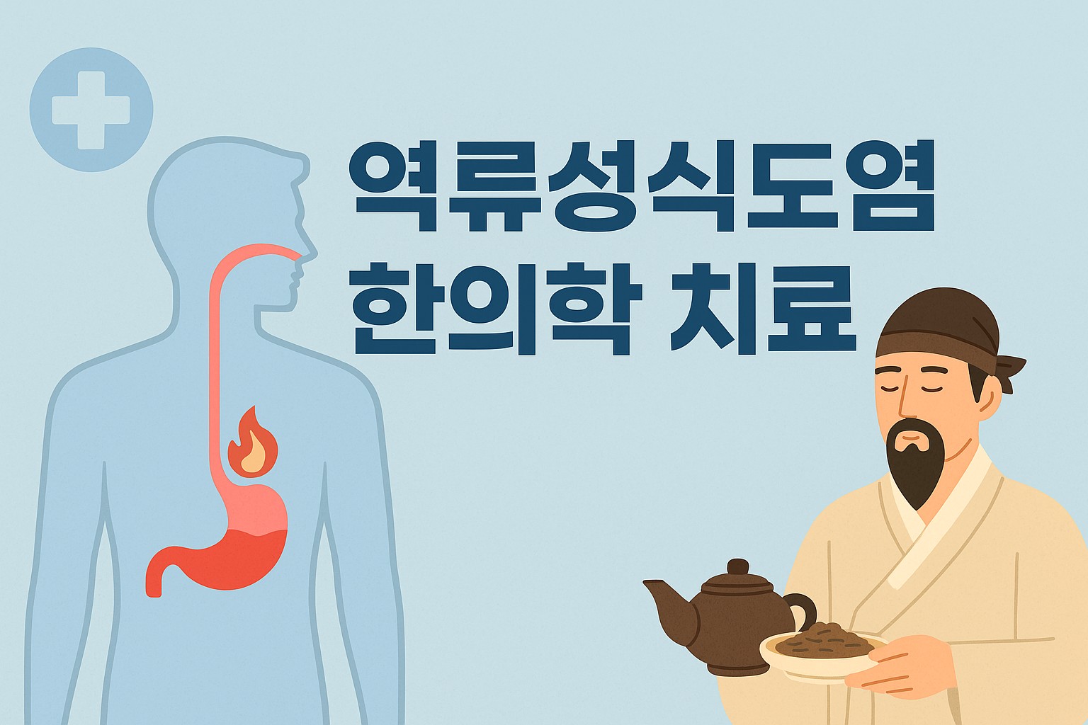 한의학은 역류성식도염을 위기허약(胃氣虛弱) 또는 간기울결(肝氣鬱結)로 보고, 위장기능 회복 + 체질 개선을 목표로 치료합니다.